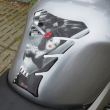 Grundsätzlich will die Maschine gegen alle möglichen äußeren Einflüsse, wie zum Beispiel Kleidung, Reißverschlüsse, Gürtelschnallen, Zündschlüssel und Co. effektiv geschützt sein. Grund genug in jedem Fall, um die Verkleidung vor allem im Bereich des Tanks sowie an den Seiten mit einem Tankpad bzw. mit zwei Kneepads zu versehen.